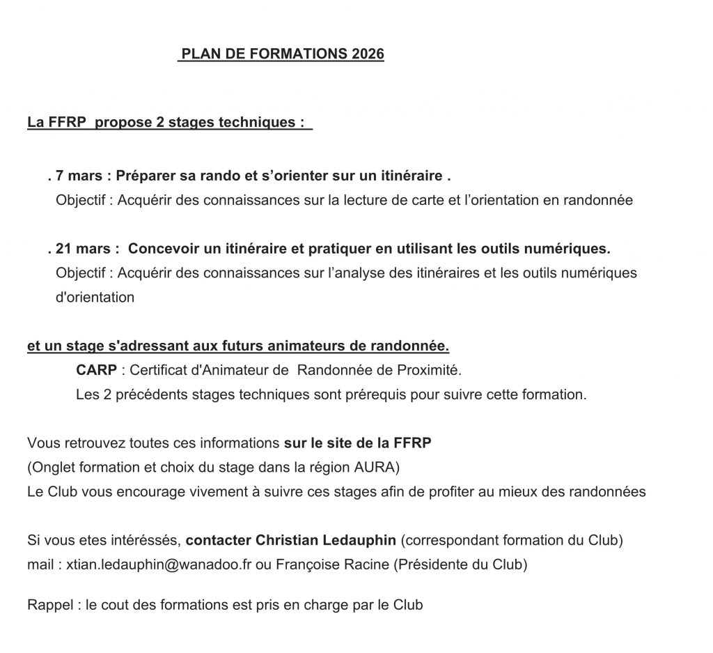 Si vous etes intéressés, contacter Christian Ledauphin (responsable formation) ou Françoise Racine (présidente du club)
